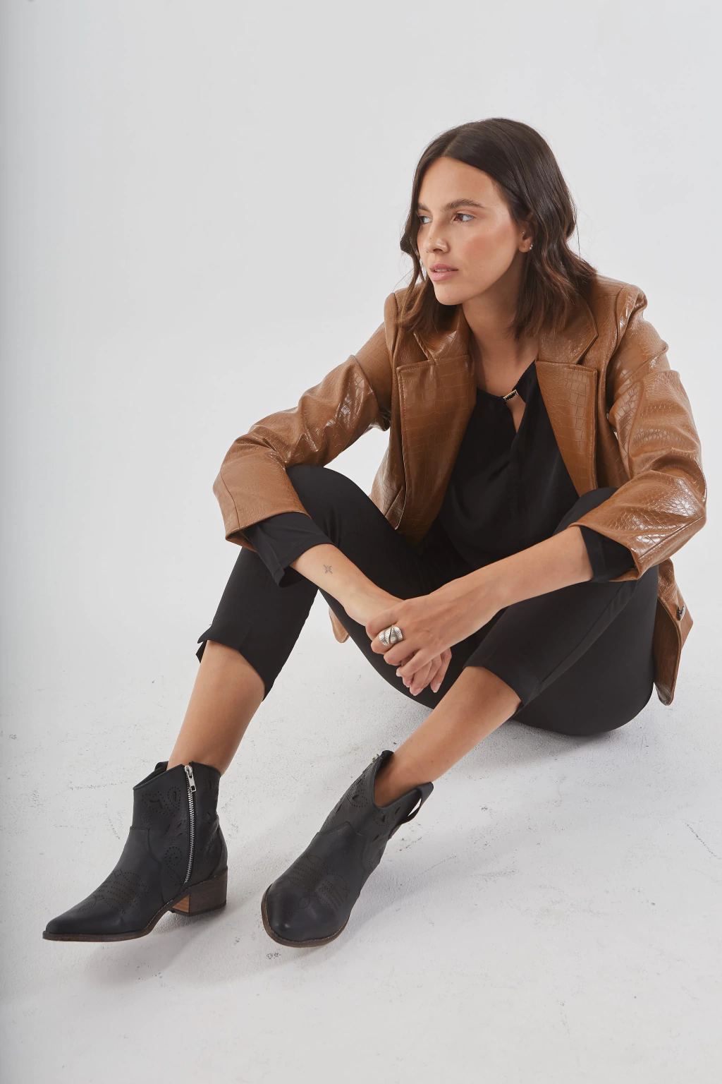 Su taco de 4 cm y caña de 13 cm (aprox) estilizan tu figura y se adaptan a todo tipo de prendas, desde faldas hasta pantalones. El cierre interno garantiza un calce perfecto, mientras que el calado a láser les otorga un toque distintivo que no pasará desapercibido.